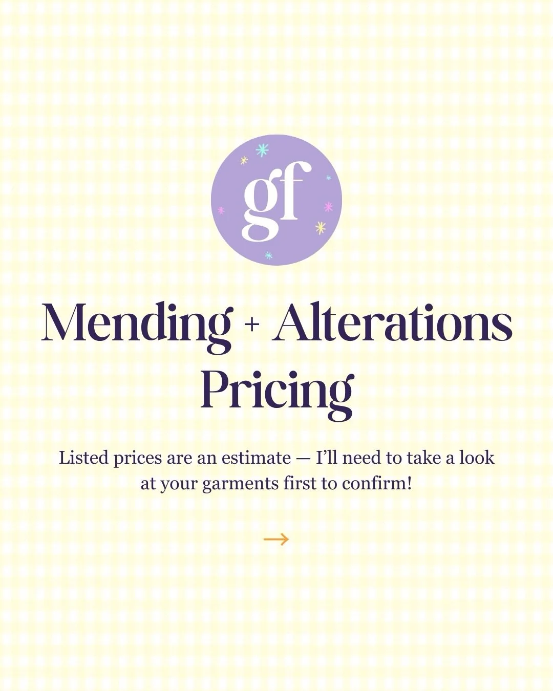 Explore base prices for quick fixes, alterations, and mending — please note that listed prices are an estimate, and I’ll need to take a look at your garments first to confirm!